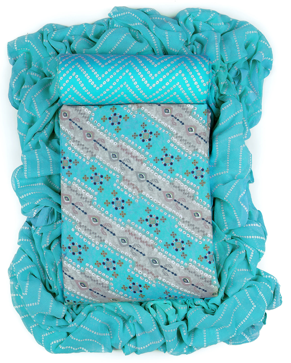 Cotton blend bandhani print unstitched dress material